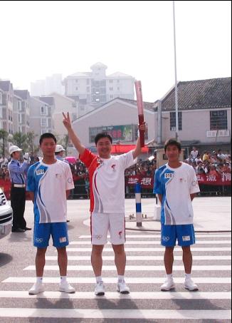 5月17日上午,晴空萬里,2008北京奧運會圣火浙江境內(nèi)火炬?zhèn)鬟f第一站在溫州舉行。氨綸公司副總潘基礎作為第40棒火炬手,身著奧運火炬手統(tǒng)一服裝,高舉火炬,圓滿完成了火炬?zhèn)鬟f任務。