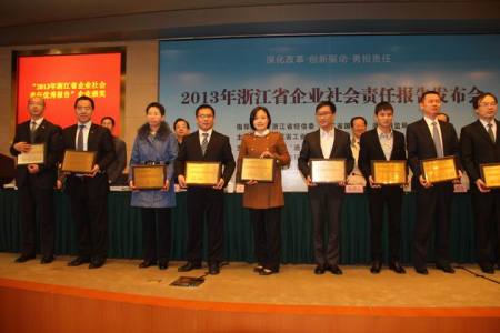 11月25日,由省經(jīng)信委、省國資委、省銀監(jiān)局、省證監(jiān)局以及省工經(jīng)聯(lián)五家單位聯(lián)合舉辦的“2013年浙江省企業(yè)社會責(zé)任報告發(fā)布會”在杭州之江飯店召開,來自政府部門領(lǐng)導(dǎo)、發(fā)布報告企業(yè)代表和相關(guān)領(lǐng)域行業(yè)負(fù)責(zé)人共200余人參加了會議,華峰氨綸公司社會責(zé)任報告參與發(fā)布并獲得“2013年浙江省企業(yè)社會責(zé)任優(yōu)秀報告”。